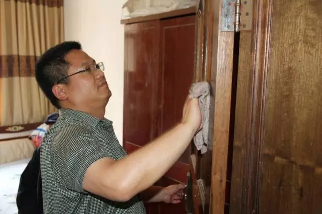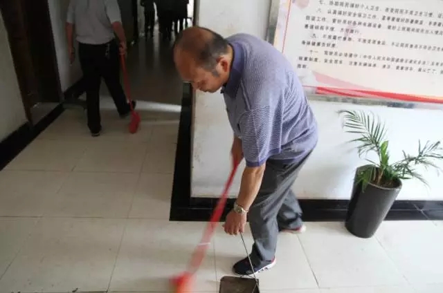 党员们拿起扫帚、抹布、拖把、水盆,清洁环境卫生。抹门窗、抹桌凳、拖地板、叠被子……从一楼打扫到四楼,一个房间一个房间地检查,看有没有遗漏卫生死角,大家忙得不亦乐乎。